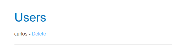 관리자 계정을 reset할수 있는 페이지가 나온다. 여기서 임의의 비밀번호를 설정해주고, 로그인 한 뒤에 Admin panel에 접속, 아래 carlos의 계정을 삭제해주면서 마무리가 된다.