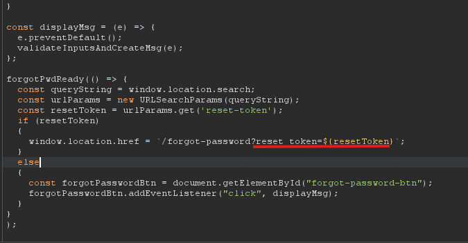 이 외에도 forgot-password를 전송하게 되면 /static/js/forgotPassword.js를 트리거 하게되는데, javascript 코드를 보면 reset_token이라는걸 사용하는것으로 보여짐