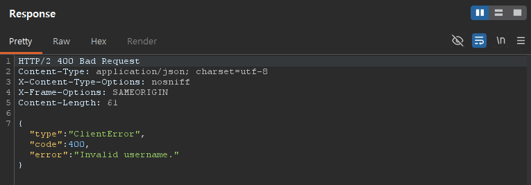 administrator 외에 존재하지 않는 임의의 값을 넣게되면 HTTP Response 400 을 반환하는걸 볼 수 있음.