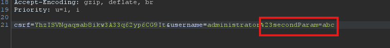 %26secondParam=abc를 administrator뒤에 추가함으로써 두번째 쿼리가 삽입되는지 확인