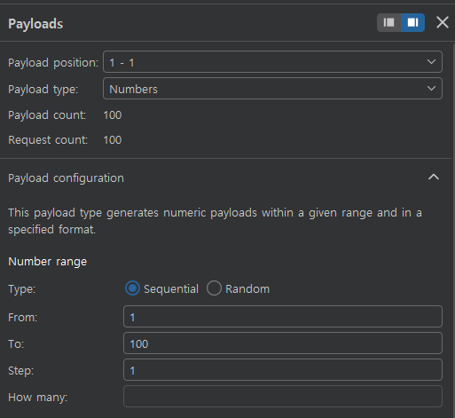 Payload 설정 후 공격 실행