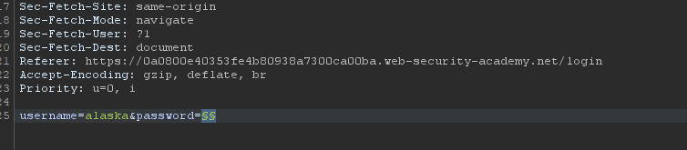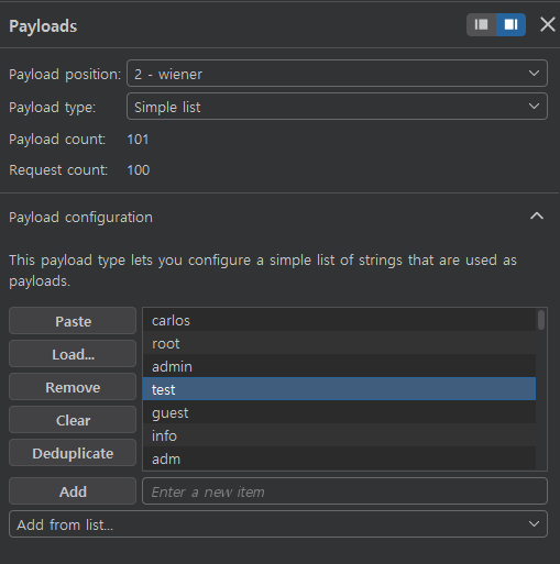 이번 실습에서는 Burp Intruder의 Pitchfork attack을 사용한다.