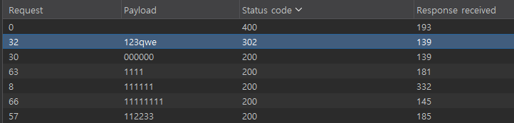 PortSwigger에서 제공한 password wordlist를 이용해 공격을 실행한다.
