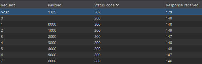 공격 결과를 확인하면 대부분 동일한 응답을 반환하지만