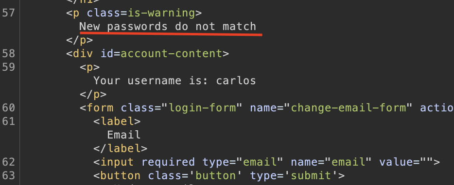 해당 응답을 보면 New passwords do not match 메시지가 나타난다.