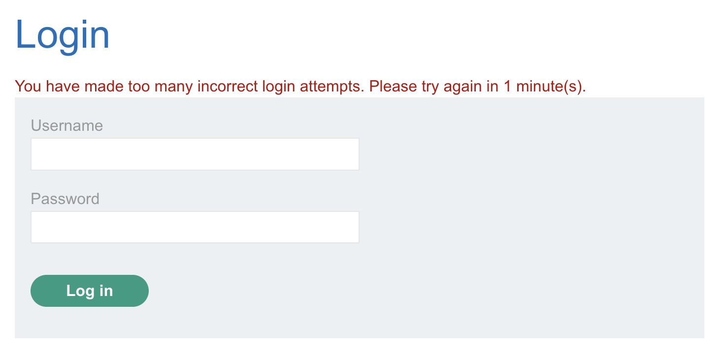 Too many attempts. Please try again in 1 minute 메시지가 나타난다.