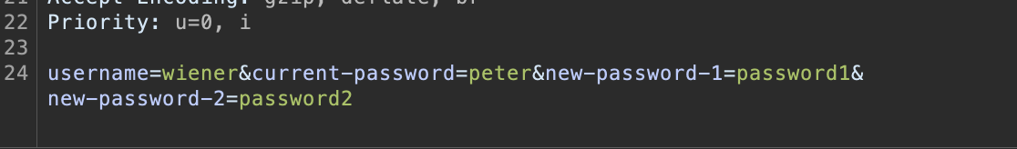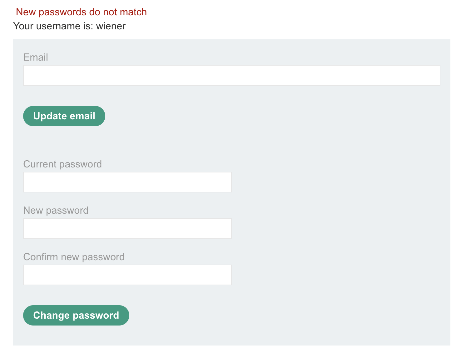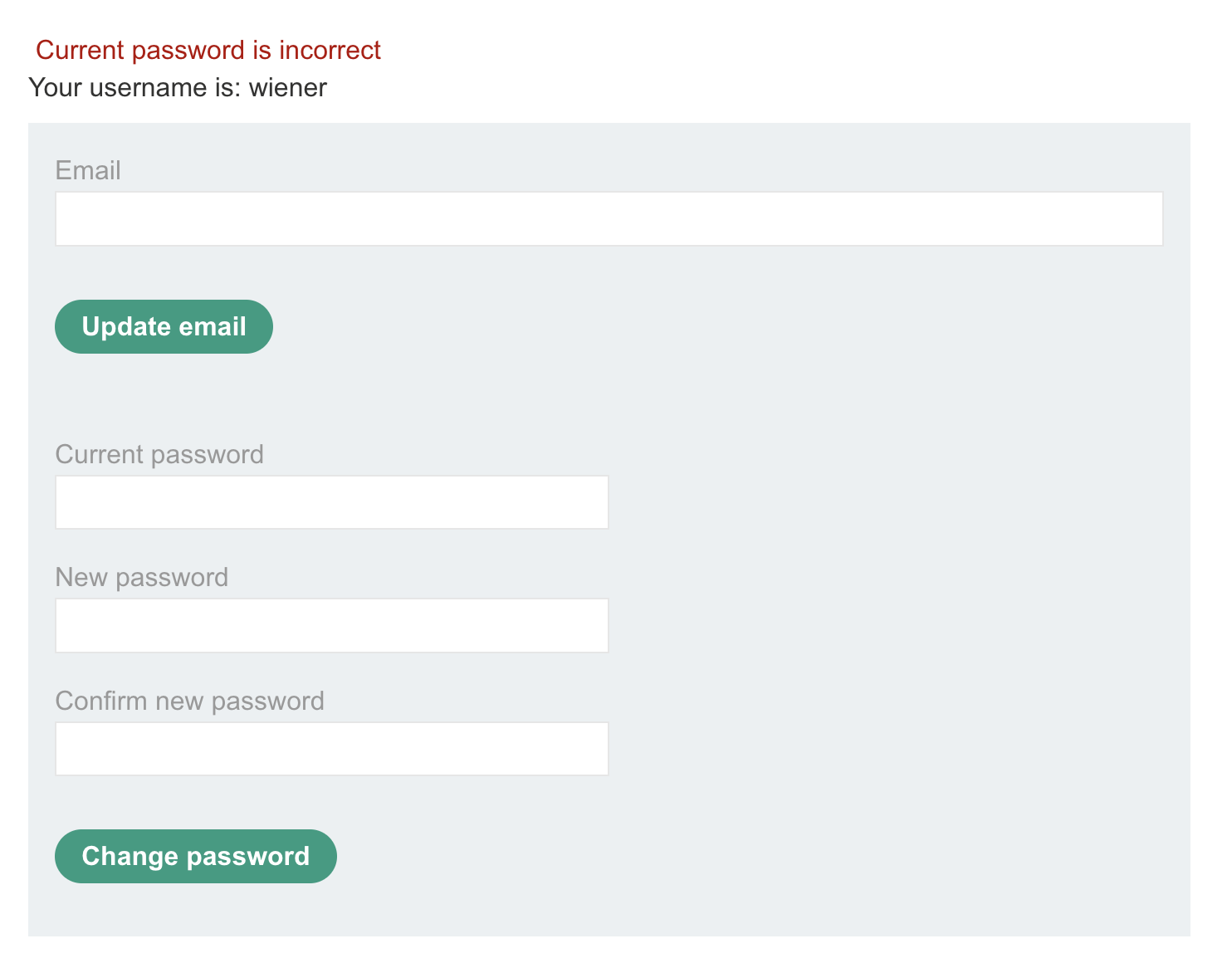 이 lab은 password change 기능의 검증 로직 문제를 이용한다.