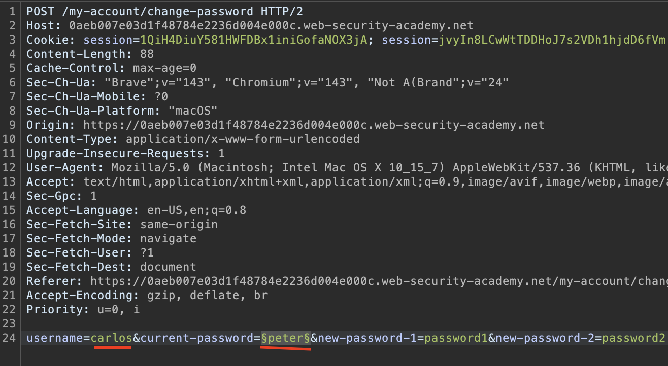 Authentication 실습(10) - Password brute-force via password change (PortSwigger Academy)