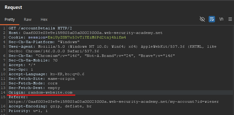그런데 이 lab에서는 서버가 요청에 들어온 Origin 값을 그대로 신뢰해서