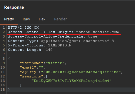 Access-Control-Allow-Origin: random-website.com 을 응답에 포함하는걸 확인할 수 있다.