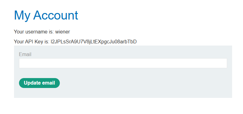 wiener:peter 계정으로 로그인 후 My account 페이지로 이동한다.