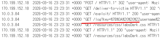 Exploit Server의 Access log를 열어보면