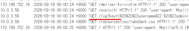 가져온 response를 그대로 exploit server로 보냄으로써 가로채기가 성공한다.