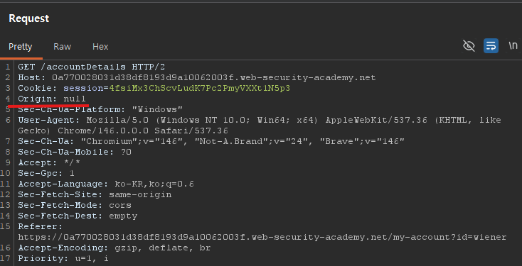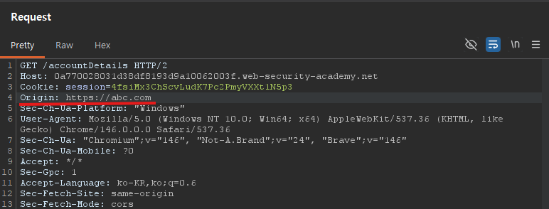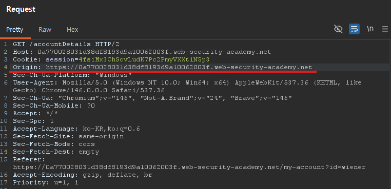이 lab은 CORS 설정 자체는 얼핏 정상처럼 보이지만