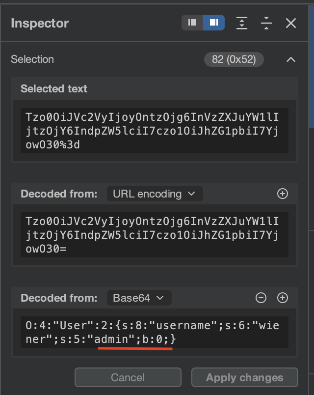 Insecure Deserialization 실습(1) - Modifying serialized objects (PortSwigger Academy)