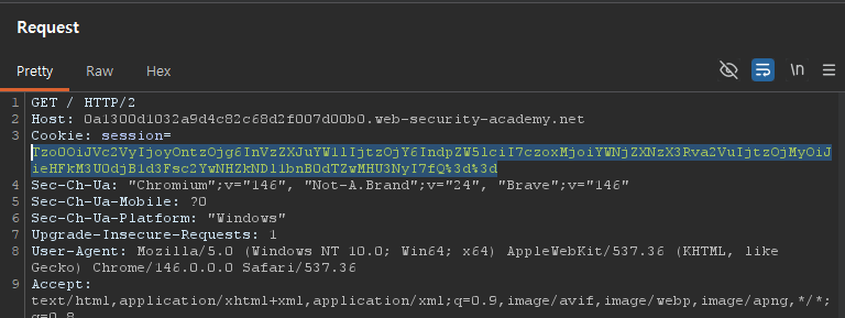 Burp에서 요청을 보면 session cookie가 인코딩되어 있다.