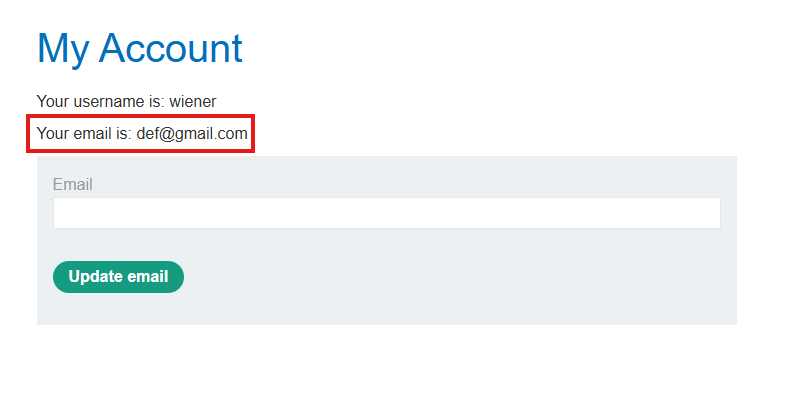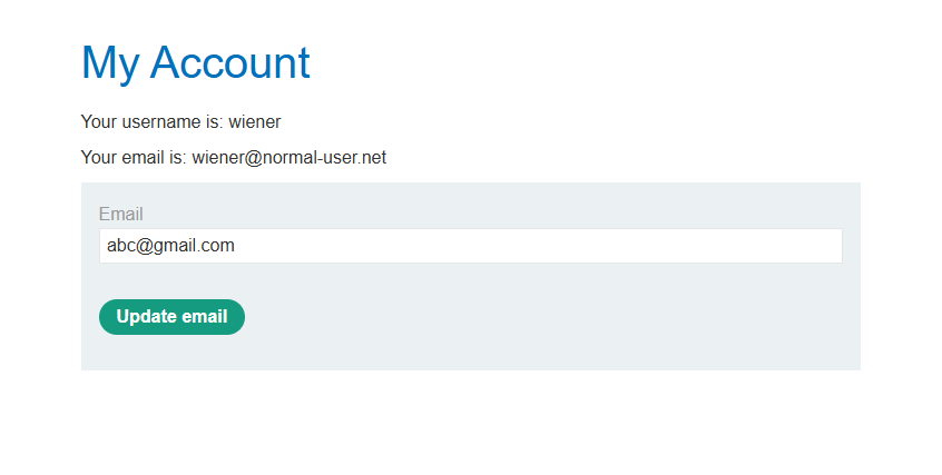 주어진 계정 wiener:peter로 로그인한 뒤 이메일을 변경해보면,