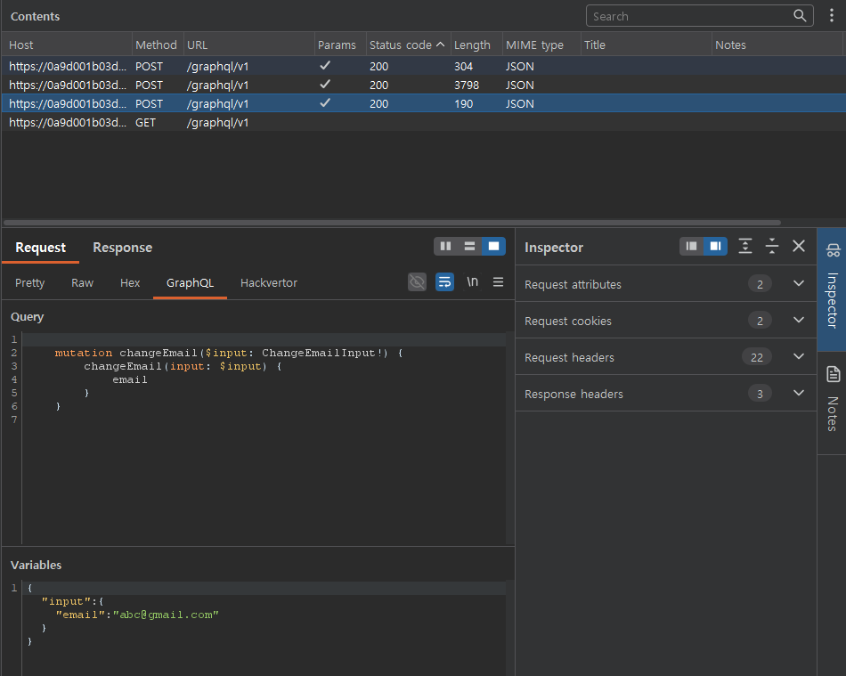 결국 피해자의 의도와 무관하게 이메일 변경 mutation을 실행시킬 수 있었고,