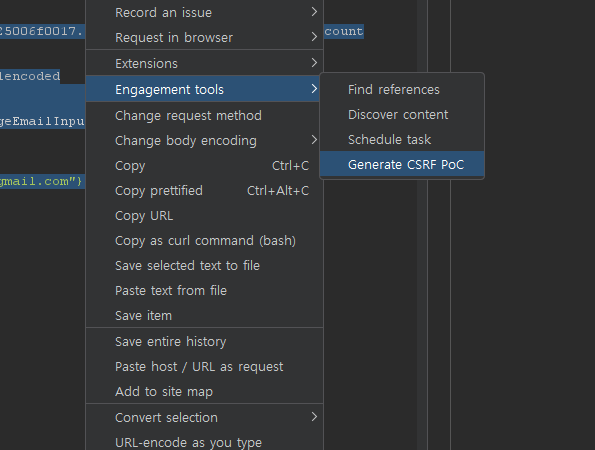 이제 Burp에서 제공하는 Generate CSRF PoC 기능을 이용해 실제로 브라우저에서 재현 가능한지 다시 한번 확인해본다.