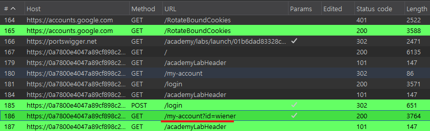 Proxy → HTTP History → 로그인 이후 요청 확인
