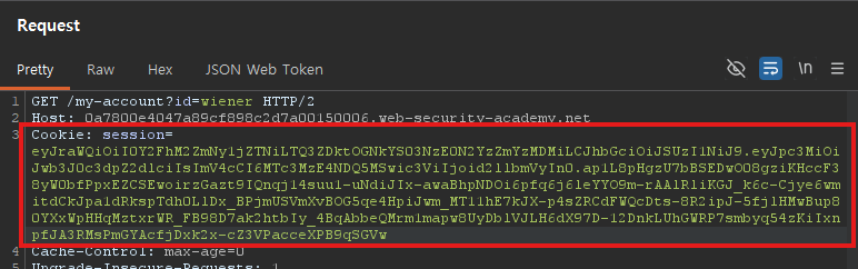 로그인 이후 요청에는 다음과 같은 JWT session cookie가 포함되어 있다.