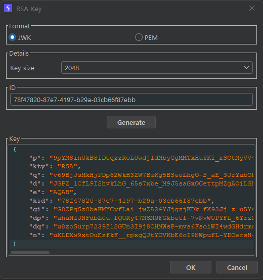 이 key는 이후 JWT 서명에 사용되는 private key이며