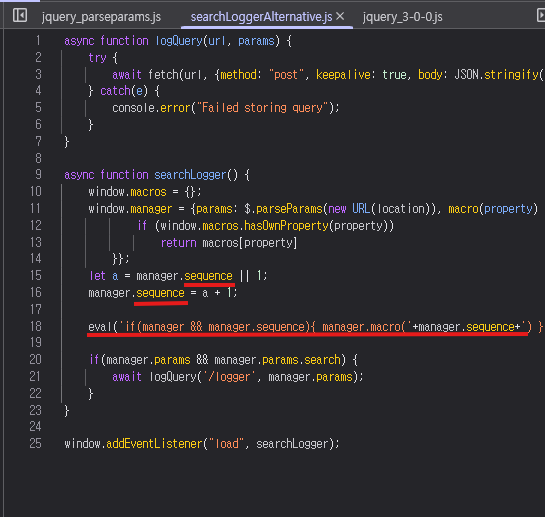 해당 코드는 eval()을 사용하며, manager.sequence값이 실행이 된다.