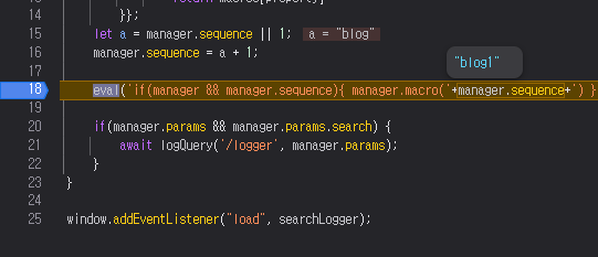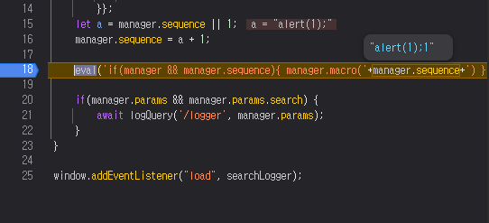 따라서 우리가 manager.sequence값에 임의의 스크립트 코드를 삽입하고, 이걸 eval()안에 넣을수 있게 된다면