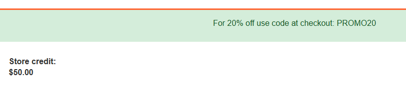로그인 후 상단을 보면 우리가 가진 Store credit과 사용할 수 있는 PROMO20 코드가 보인다.